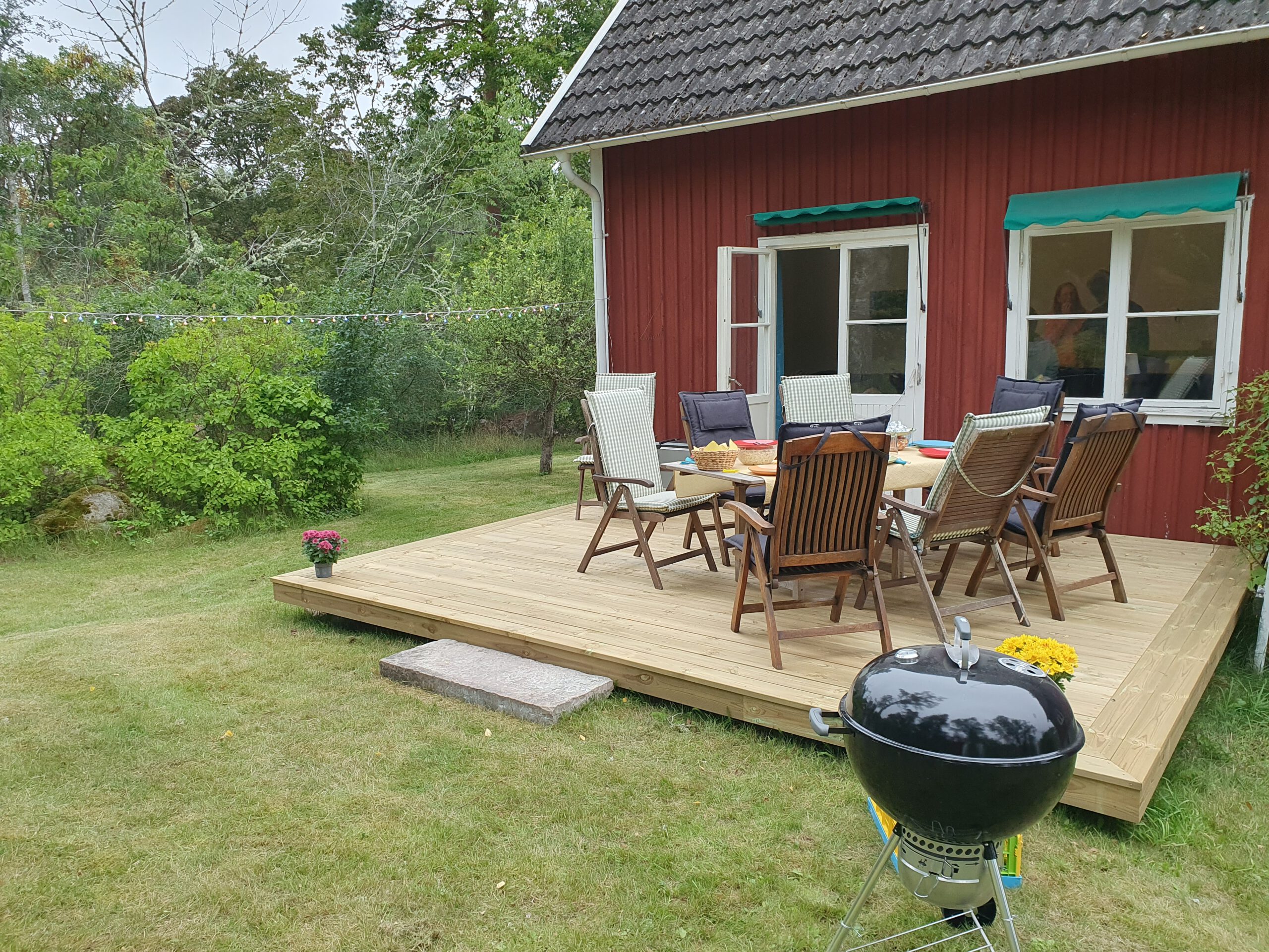 Unsere Terrasse mit Gartenmöbeln und Grill